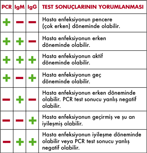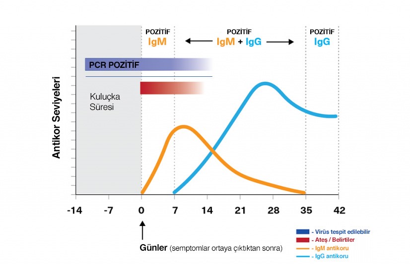 IgG tipi antikorlar en erken 15’inci gün pozitif çıkmakta ve COVID-19’a yol açan virüse karşı vücudun bağışıklığını göstermektedir.